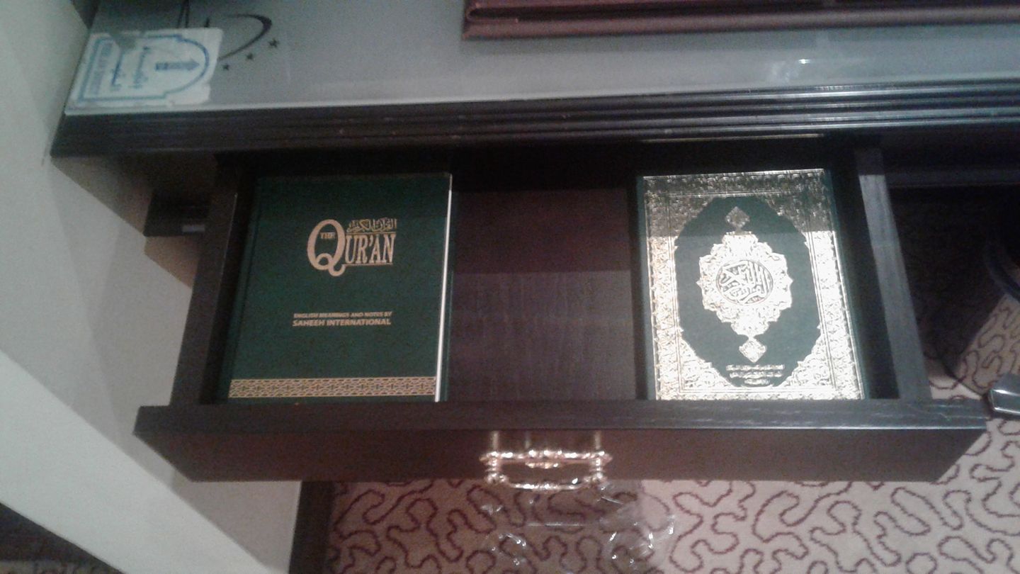 وتابع: "حين دخلت غرفتي؛ فتحت درج المكتب فوجدتّ نسختين من المصحف الشّريف؛ نسخة بالعربيّة ونسخة بالإنجليزية، وأشهد الله انّني أقمت في هذا الفندق أربعة أيّام كاملة لم أر فيه وجه امرأة واحدة".