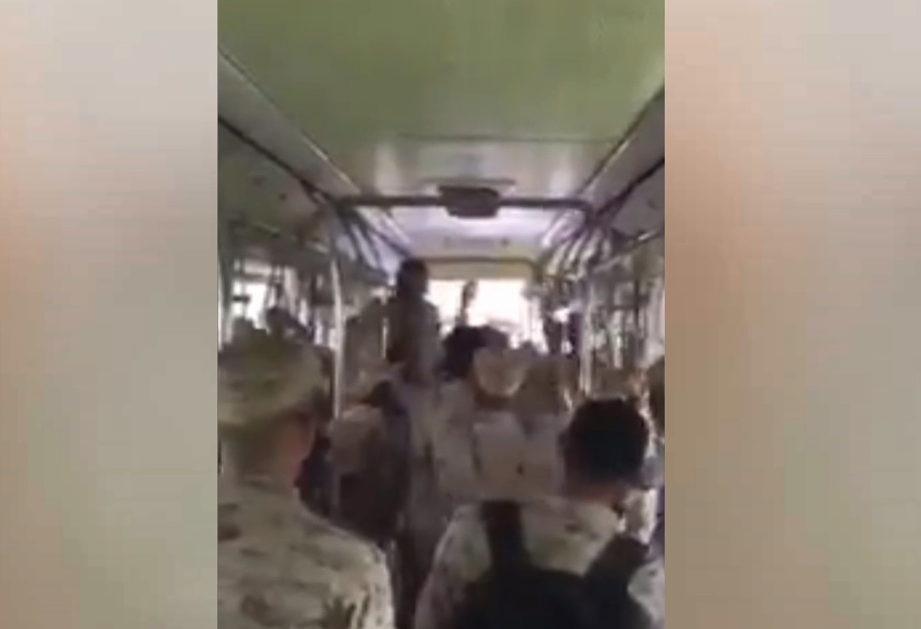 وهتف الجنود الذين ظهروا وهم يستقلون حافلة لنقل الجنود إلى مواقع القتال: "ندري أن الموت دون الدين جنة".