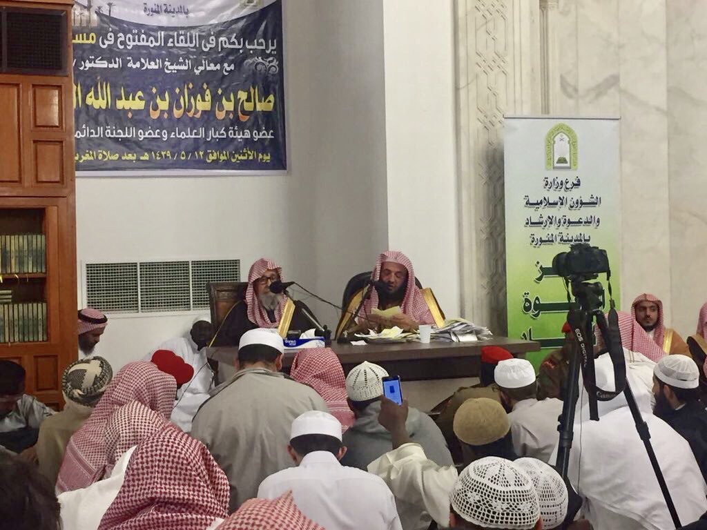 شهد اللقاء المفتوح لمعالي الشيخ الإمام د. صالح بن فوزان الفوزان عضو هيئة كبار العلماء، الاثنين الماضي، حضورًا كثيفًا لطلاب العلم ورواد مسجد قباء بالمدينة المنورة.
